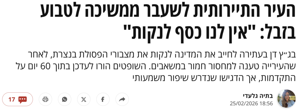 נמשיך לעקוב אחר יישום החלטת בית המשפט ולעמוד על כך שיוקצו המשאבים הדרושים לניקוי מלא של העיר ולמניעת הישנות המשבר. לא נעצור עד שהמדינה תיקח אחריות ותשים סוף למחדל החמור הזה.